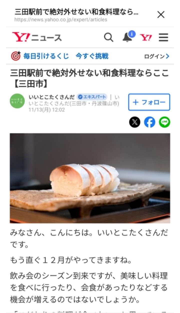 Yahooニュースに載りました💻 2023/11/15 鯖寿司🐟🍚 Yahooニュースに載りました!! 昨日、お客様から『ネットに載ってるね』なんて言われる事が何回かあり… 🖥見てみると ホントに載ってましたっ☺️ 驚きです!!! ですが、それ以上に嬉しさが勝って😁 まさかYahooニュースに載るなんて💦💦 一度覗いてみてください!! この喜びをみなさんと共有したい と思いブログに載せました🎵 お電話でのお問い合わせ 079-556-7185